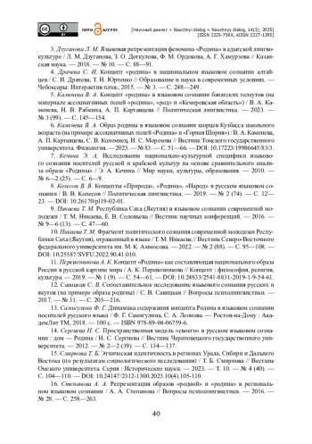 8. Колесов В. В. Концепты «Природа», «Родина», «Народ» в русском языковом сознании / В. В. Колесов // Политическая лингвистика. - 2019. - № 2 (74). - С. 12-23. - https://doi.org/10.26170/pl19-02-01.