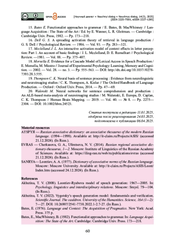 10. Пищальникова В. А. Интерпретация ассоциативных данных как проблема методологии психолингвистики / В. А. Пищальникова // Russian Journal of Linguistics. - 2019. - Т. 23. - № 3. - С. 749-761. - https://doi.org/10.22363/2312-9182-2019-23-3-749-761.