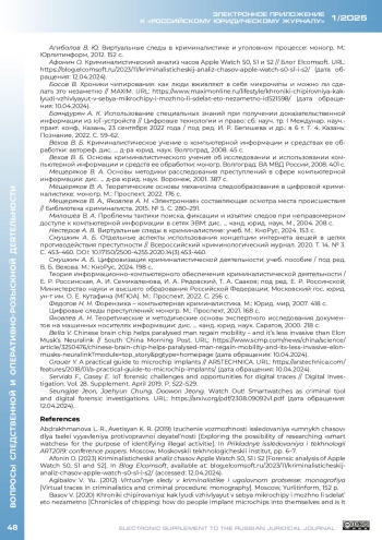 12. Нестеров А. В. Виртуальные следы в криминалистике: учеб. М.: КноРус, 2024. 153 с. EDN: UNWVIS