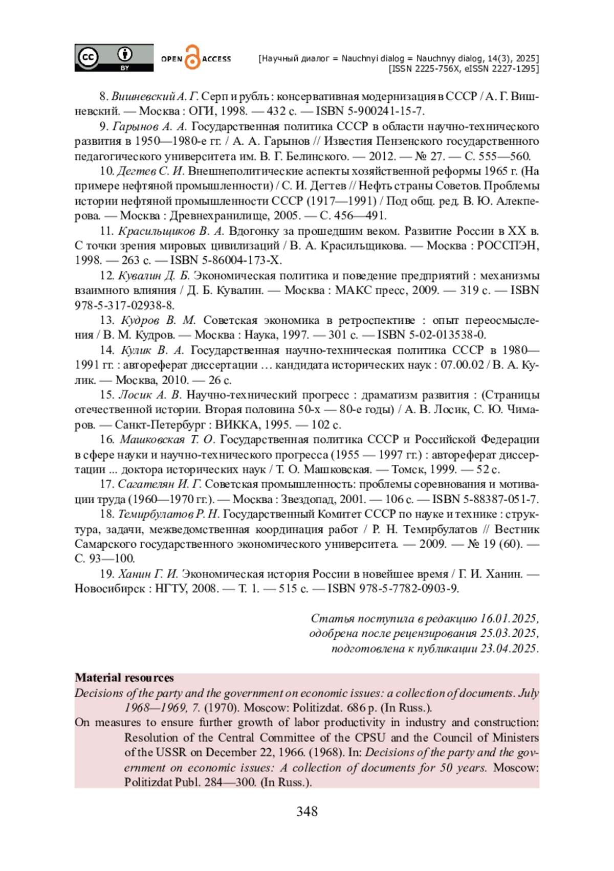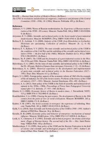 9. Гарынов А. А. Государственная политика СССР в области научно-технического развития в 1950-1980-е гг. / А. А. Гарынов // Известия Пензенского государственного педагогического университета им. В. Г. Белинского. - 2012. - № 27. - С. 555-560.