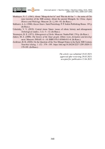 11. Мункуев Н. Ц. О «Мэн-да бэй-лу» и «Хэй-да ши-люе» - записках китайских путешественников XIII в. О древних монголах / Н. Ц. Мункуев // Китай. Япония : История и филология. - Москва : [б. и.], 1961. - С. 80-92.