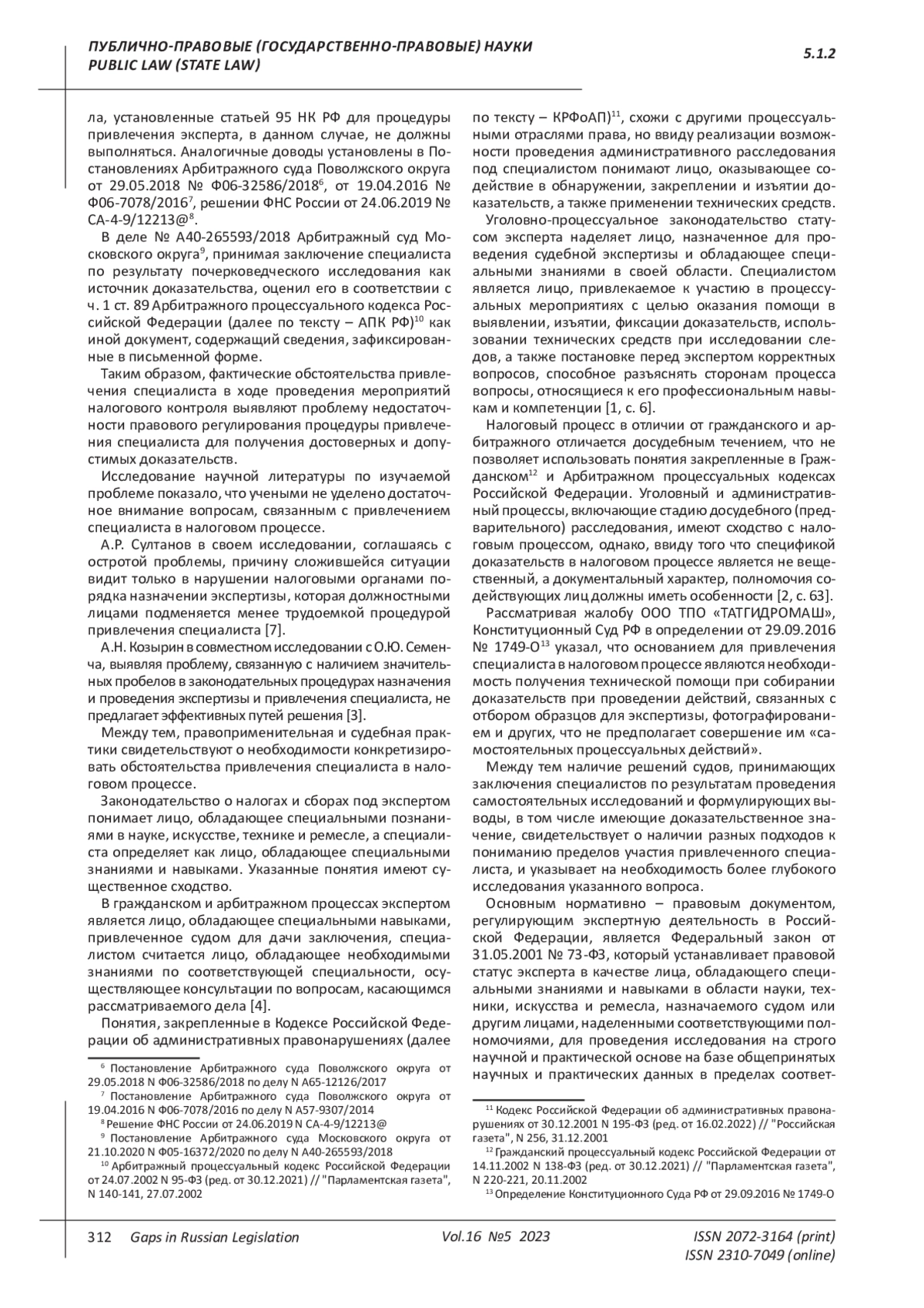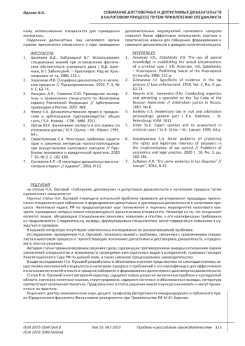 3. Козырин А.Н., Семенча О.Ю. Проведение экспертизы и привлечение специалиста по Налоговому кодексу Российской Федерации // Арбитражное правосудие в России. 2007. №8.