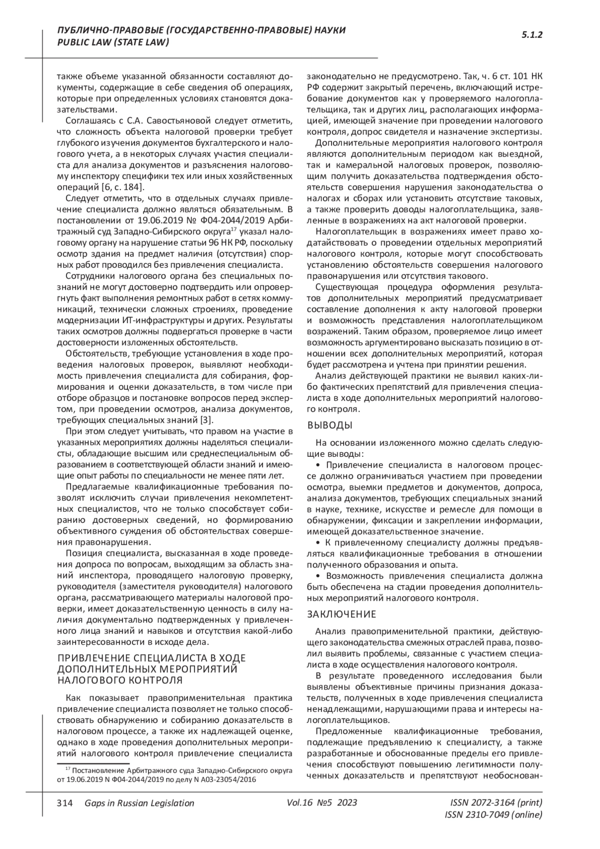 6. Савостьянова С.А. Некоторые проблемы защиты прав и законных интересов налогоплательщиков при осуществлении налогового контроля // Проблемы экономики и юридической практики. 2020 Т. 16. № 3. С. 182-186. EDN: JTKLEG