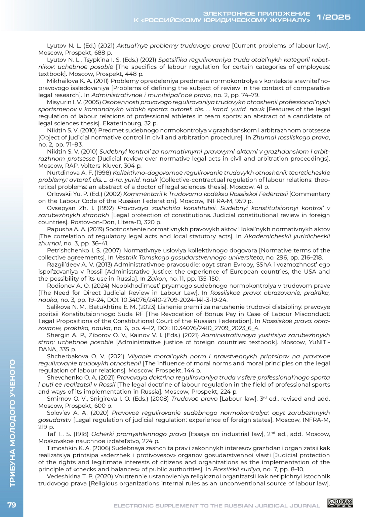 40. Родионов А. О. Необходимость прямого судебного нормоконтроля в трудовом праве // Российское право: образование, практика, наука. 2024. № 3. С. 19-24. DOI: 10.34076/2410-2709-2024141-3-19-24 EDN: HBXULY