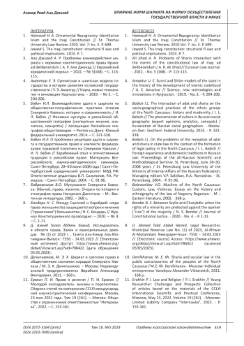 18. Сюкияйнен, Л. Р. Ислам и конституции арабских стран / Л. Р. Сюкияйнен // Право. Журнал Высшей школы экономики. - 2022. - № 4. - С. 4-23. EDN: PFWGSE