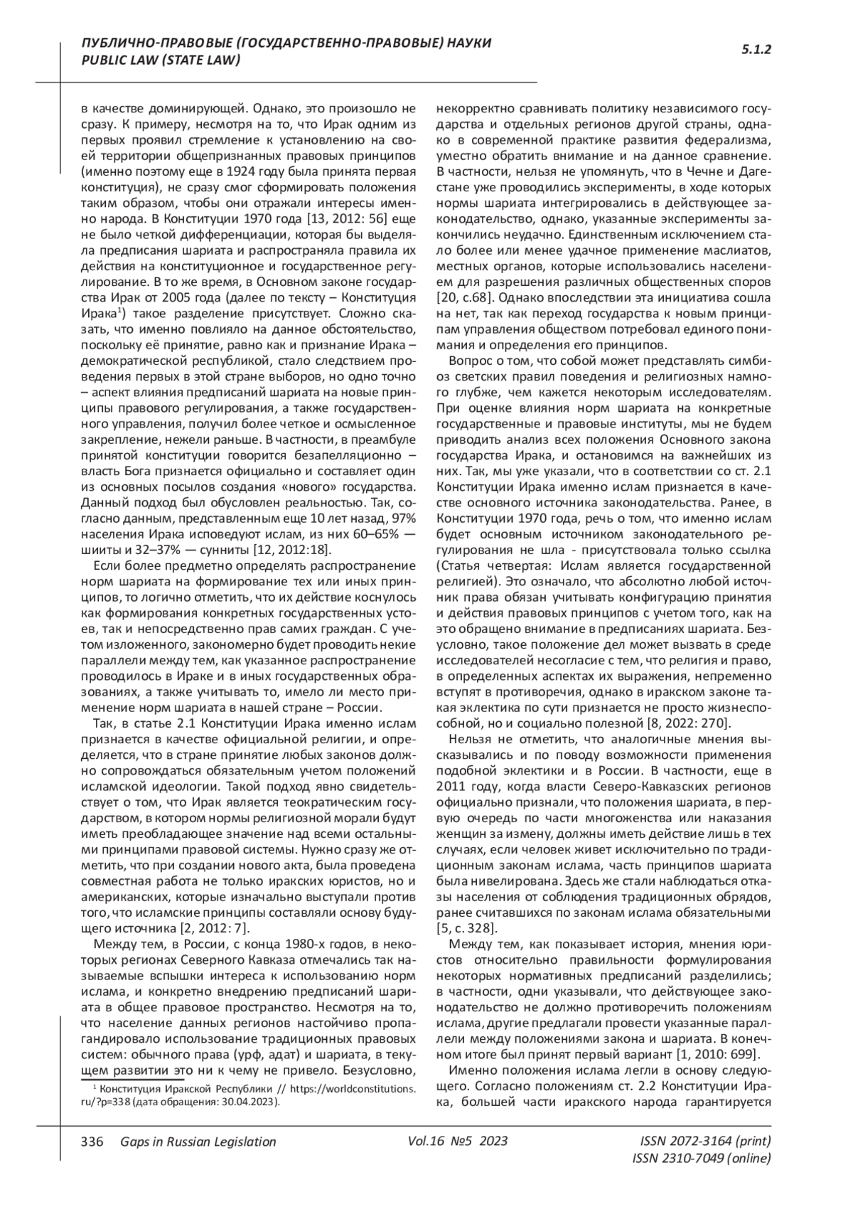 1. Hamoudi H. A. Ornamental Repugnancy: Identitarian Islam and the Iraqi Constitution // St. Thomas University Law Review. 2010 Vol. 7: Iss. 3. P. 699.