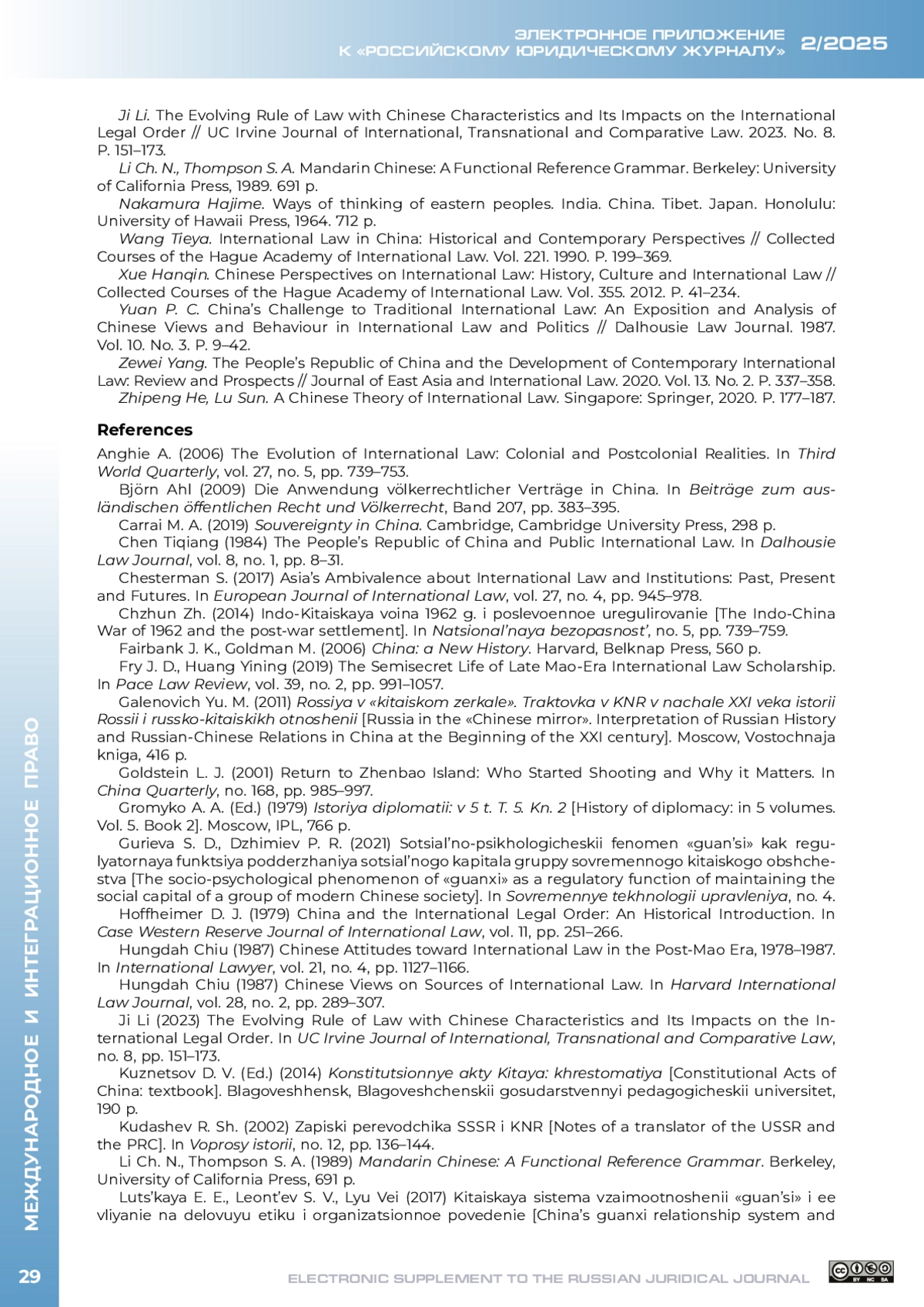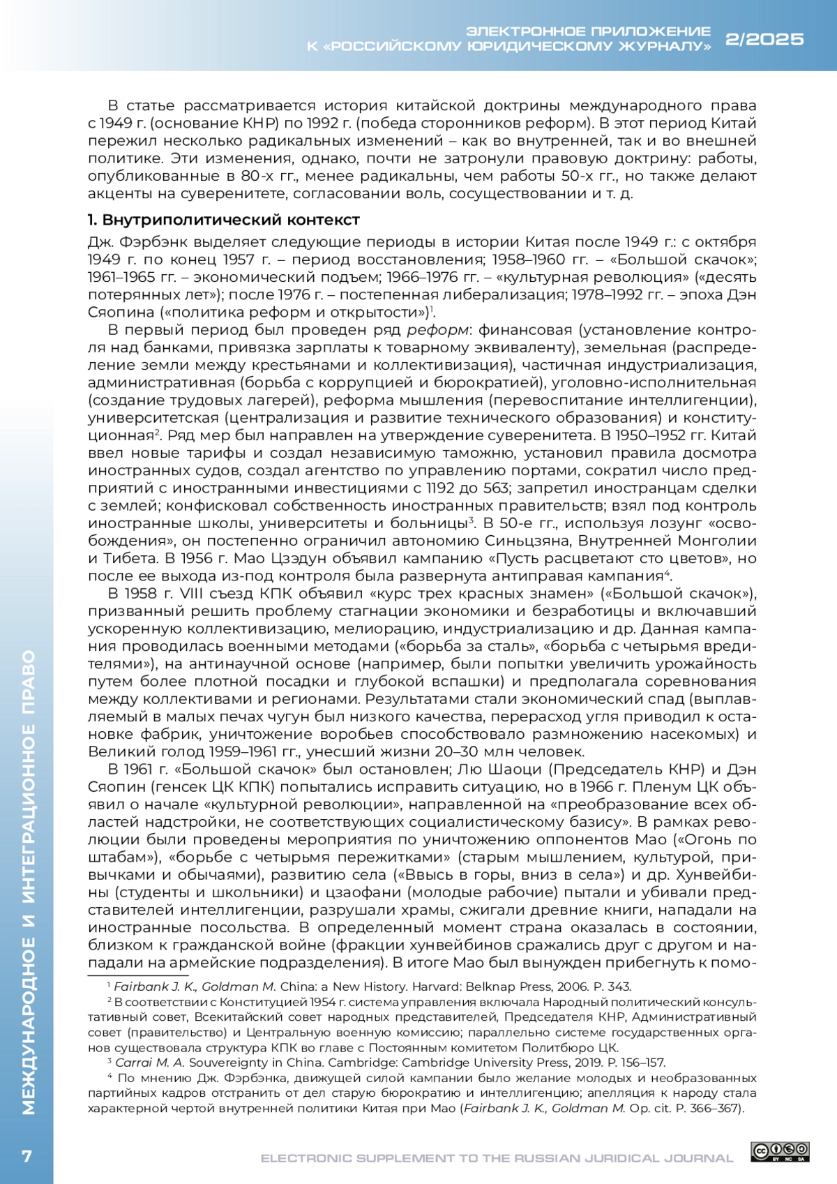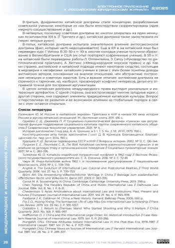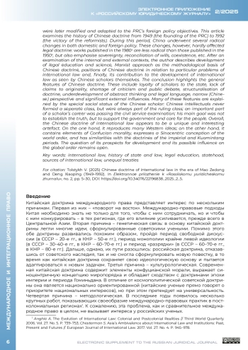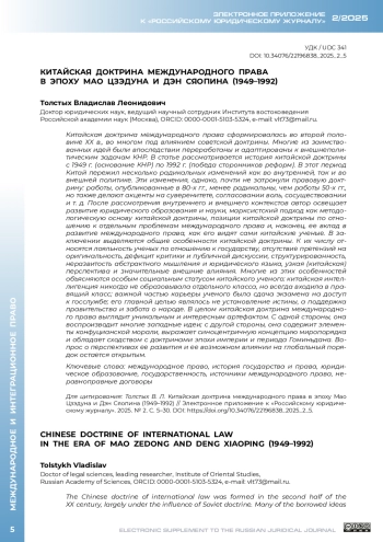ТОЛСТЫХ В. Л. КИТАЙСКАЯ ДОКТРИНА МЕЖДУНАРОДНОГО ПРАВА В ЭПОХУ МАО ЦЗЭДУНА И ДЭН СЯОПИНА (1949-1992) // ЭЛЕКТРОННОЕ ПРИЛОЖЕНИЕ К РОССИЙСКОМУ ЮРИДИЧЕСКОМУ ЖУРНАЛУ. 2025. № 2