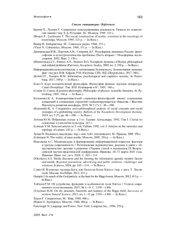 1. Бергер П., Лукман Т. Социальное конструирование реальности. Трактат по социологии знания / пер. Е.Д. Руткевич. М.: Медиум, 1995. 323 с.