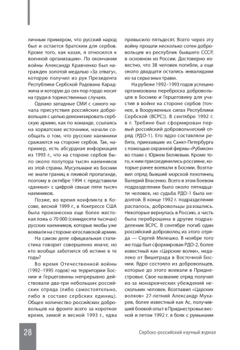 Статья содержит несколько ключевых аспектов, включая анализ мотивации российских добровольцев, их социальный и культурный фон, а также воздействие официальной российской политики на их участие в войне. Автор упоминает о том, что многие из добровольцев были бывшими комсомольцами, которые, столкнувшись с идеями монархизма и православного патриотизма, нашли свое призвание в поддержке сербов.