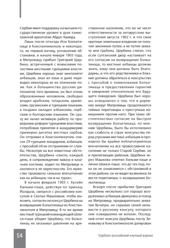 Статья подробно описывает предшествующие обстоятельства, которые влияли на назначение Щербины и его действия. Упоминаются интриги, зловещие угрозы со стороны местных албанских лидеров, таких как Иса Больетинац, и постоянные попытки консульства наладить порядок. Чрезмерная опасность, с которой столкнулись русские и сербские интересы в регионе, наглядно иллюстрируется через факты о нападениях на консульство и угрозах для жизни консулов, что в итоге нашло кульминацию в трагическом убийстве Щербины в 1903 г.