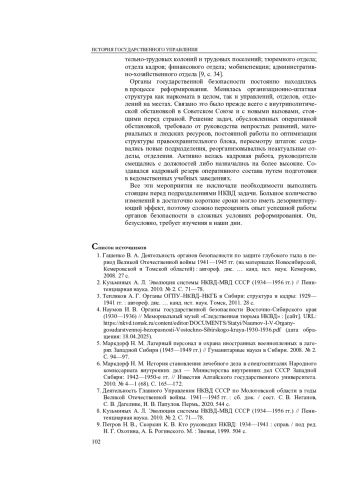 2. Кузьминых А. Л. Эволюция системы НКВД-МВД СССР (1934—1956 гг.) // Пенитенциарная наука. 2010. № 2. С. 71—78.