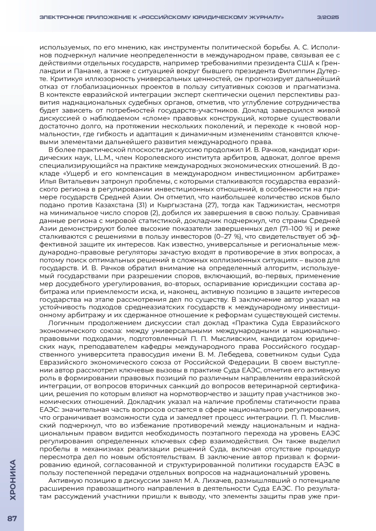 Статья: ЕВРАЗИЙСКИЙ РЕГИОНАЛИЗМ И ТЕНДЕНЦИИ МНОГОПОЛЯРНОСТИ В ФОКУСЕ УРАЛЬСКОЙ ШКОЛЫ МЕЖДУНАРОДНОГО ПРАВА (2025)