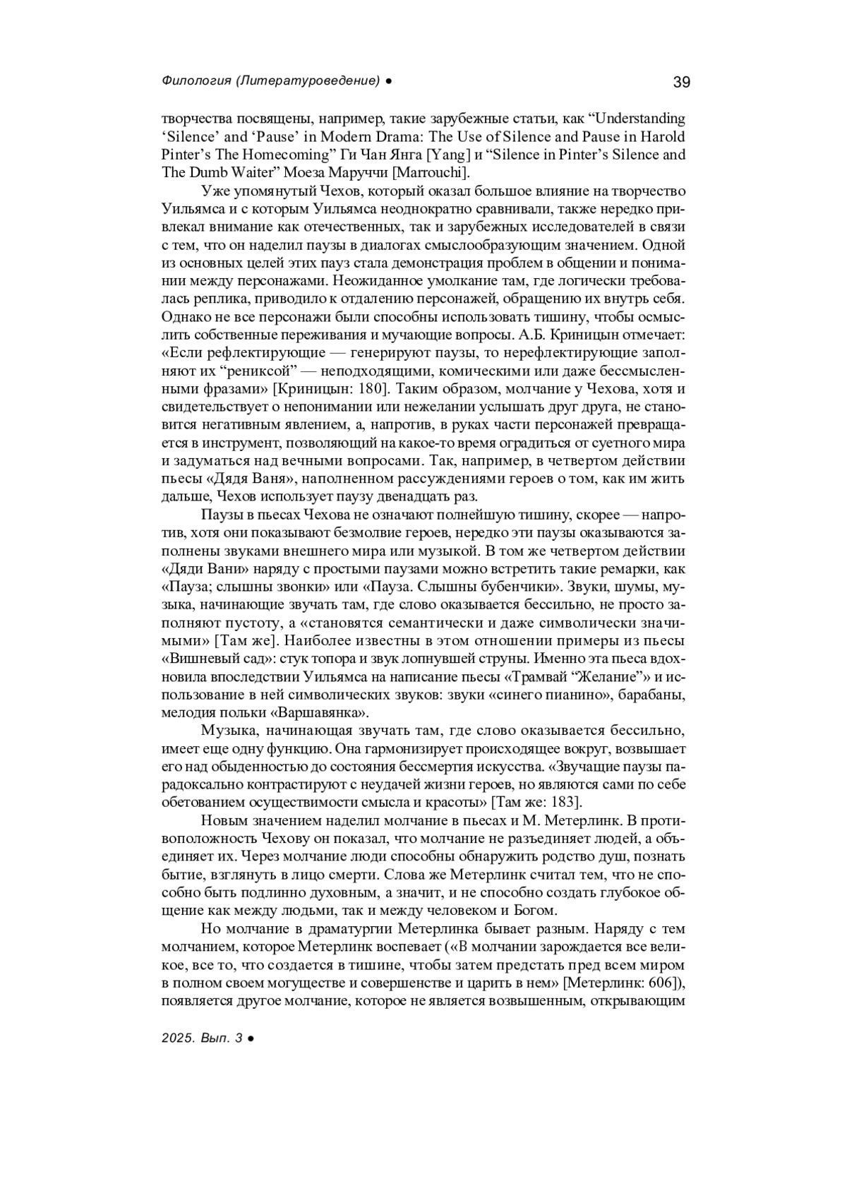 6. Криницын А.Б. Поэтика и семантика пауз в драматургии Чехова // Anton P. Chekchov - der Dramatiker. Drittes internationales Chekchov-Simposium Badenweiler im Oktober, 2004. С. 176-186.