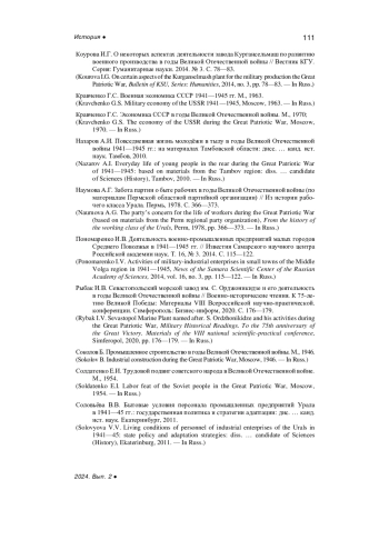 Naumova A.G. The party’s concern for the life of workers during the Great Patriotic War (based on materials from the Perm regional party organization), From the history of the working class of the Urals, Perm, 1978, pp. 366-373. - In Russ.