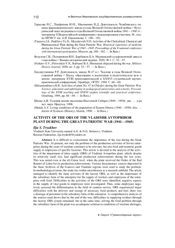 Tarasova I.S., Panfilova Yu.N., Misyukevich N.D. Activities of the Chelyabinsk Chemical and Pharmaceutical Plant during the Great Patriotic War, Historical experience of medicine during the Great Patriotic War of 1941-1945. Proceedings of the X national conference with international participation, Moscow, pp. 180-182. - In Russ.