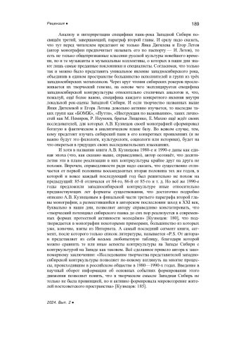 6. Кузнецов А.В. Западносибирская контркультура 1980-1990-х годов как социокультурный феномен: монография. Ростов-на-Дону, Таганрог: Издательство Южного федерального университета, 2023. 200 с. EDN: HCTDFO