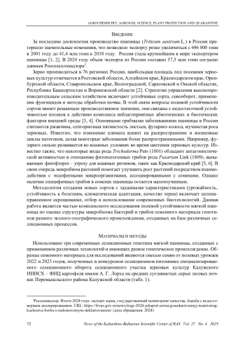 Статья: ПРИМЕНИМОСТЬ ОЦЕНКИ СТРУКТУРЫ МИКРОБИОМА ЭНДОФИТНЫХ ГРИБОВ СЕМЕННОГО МАТЕРИАЛА В СЕЛЕКЦИИ МЯГКОЙ ЯРОВОЙ ПШЕНИЦЫ (2025)
