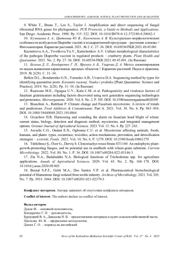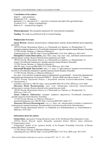 Ключевые фразы: СЕЛЕКЦИЯ, защита растений, пшеница мягкая яровая, сорт, эндофитные микроорганизмы, грибы, фузариоз колоса, микроскопирование, секвенирование по сэнгеру