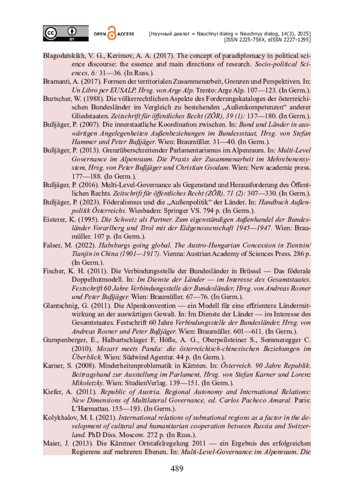 12. Bußjäger P. Föderalismus und die „Außenpolitik“ der Länder / P. Bußjäger // Handbuch Außenpolitik Österreichs. - Wiesbaden : Springer VS, 2023. - 794 p.