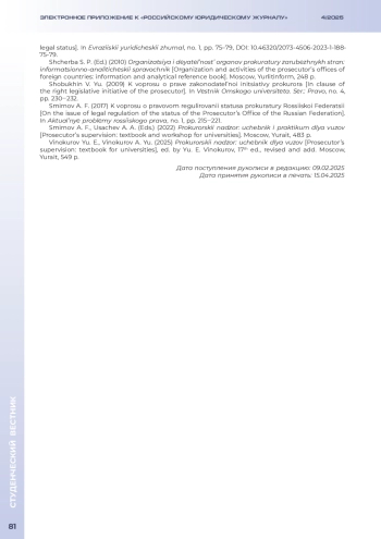 Журнал: ЭЛЕКТРОННОЕ ПРИЛОЖЕНИЕ К РОССИЙСКОМУ ЮРИДИЧЕСКОМУ ЖУРНАЛУ