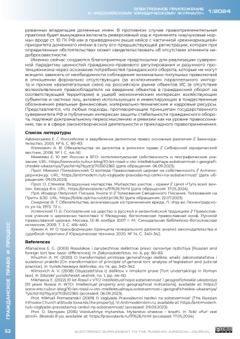 2. Климович А. В. Обязательства из деликтов в римском праве // Сибирский юридический вестник. 2008. № 1. С. 44-50. EDN: JXCZTV