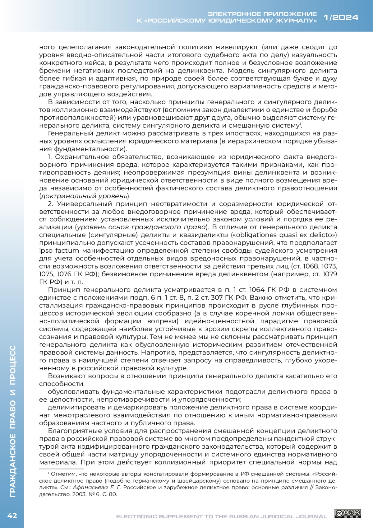1. Афанасьева Е. Г. Российское и зарубежное деликтное право: основные различия // Законодательство. 2003. № 6. С. 80-83. EDN: XYNQQL