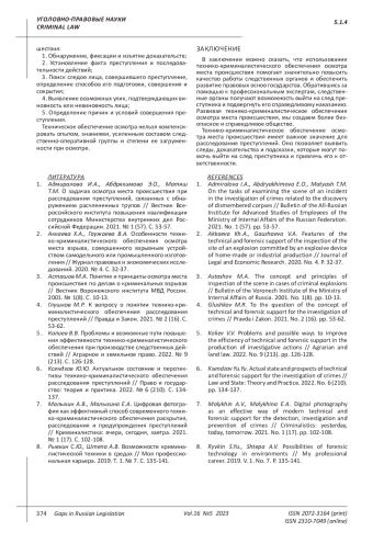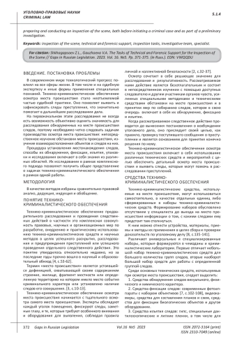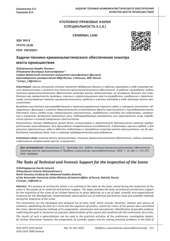 Статья: ЗАДАЧИ ТЕХНИКО-КРИМИНАЛИСТИЧЕСКОГО ОБЕСПЕЧЕНИЯ ОСМОТРА МЕСТА ПРОИСШЕСТВИЯ (2023)