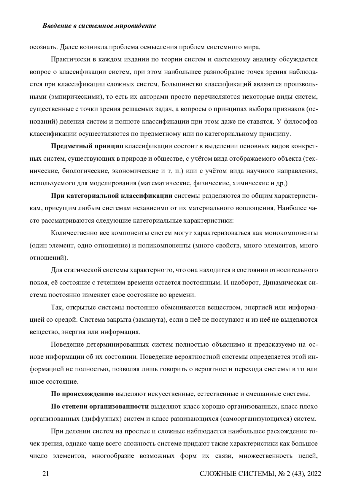 В последние годы мировая научная общественность пытается объединить свои усилия по координации научных исследований в направлении исследования сложных систем. Так уже в 80-е годы сложилась специальная научная дисциплина, названная теорией сложности. Наука о сложных нелинейных процессах (Nonlinear Science, Science of complexity, Science of Chaos) находится сейчас лишь в начальной стадии стремительного роста, о чем свидетельствует бурное развитие этой отрасли в США. Проблемы сложных нелинейных систем изучаются во всех крупных университетах Европы и Америки. Данная работа посвящена анализу различных подходов к исследованию проблемы сложных систем с современных позиций. Кратко освещены вопросы становления системного мира. Изложены основы современного понимания глобального Эволюционизма.