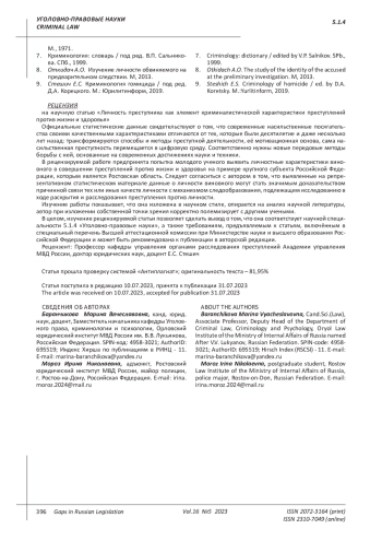 Criminology: dictionary / edited by V.P. Salnikov. SPb., 1999.