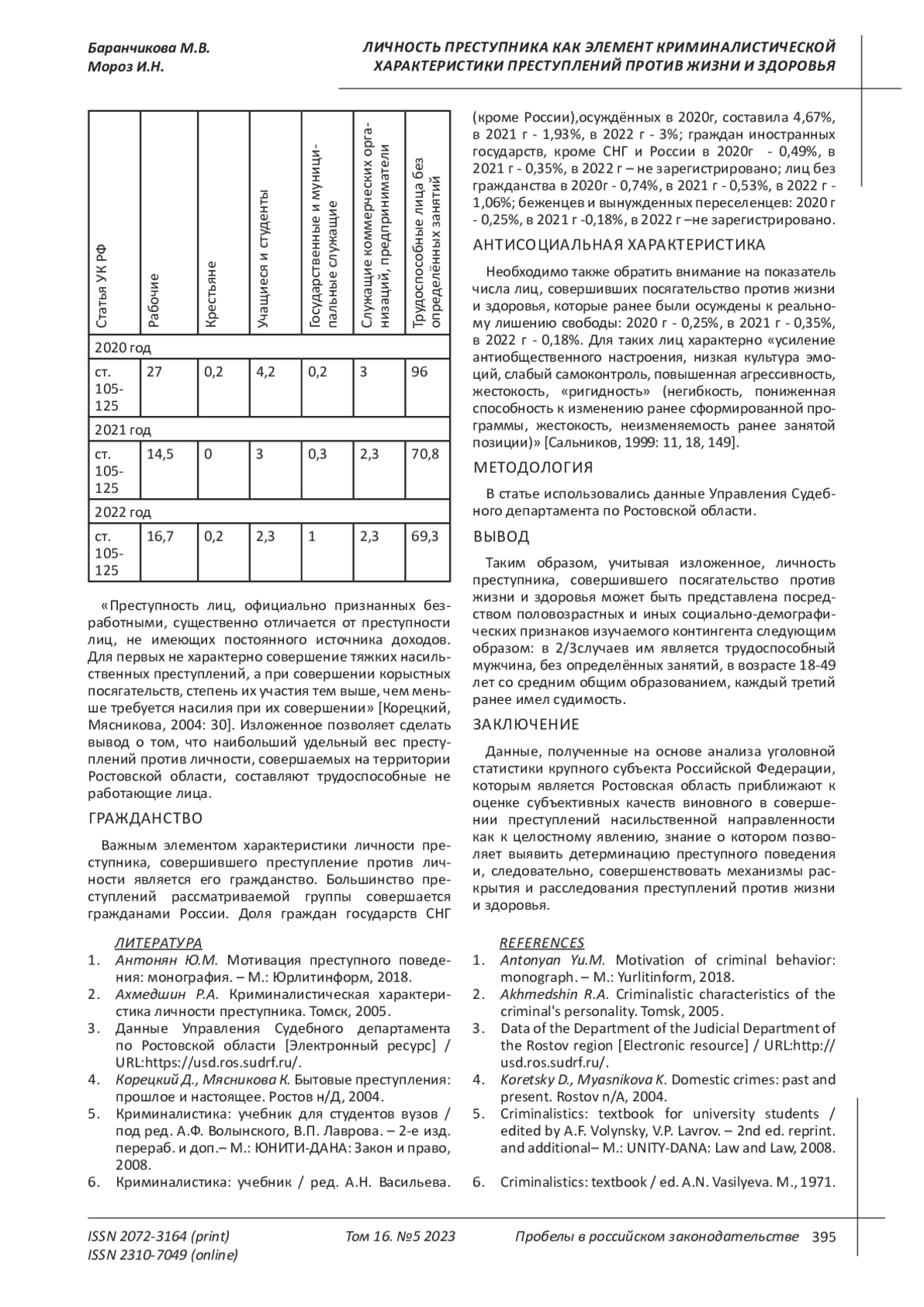 9. Стешич Е.С. Криминология гомицида / под ред. Д.А. Корецкого. М.: Юрилитинформ, 2019. EDN: YLTWYH