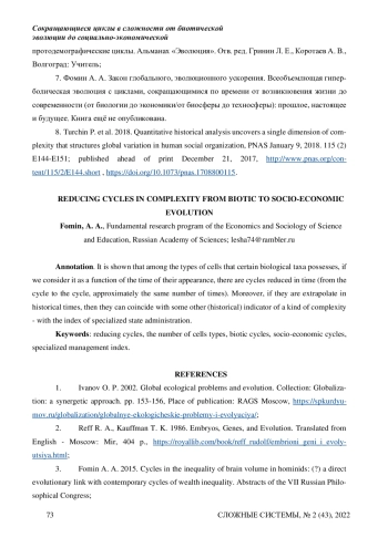 5. Фомин А. А. 2018. Циклы неравномерности мирового социально-экономического развития могут быть не моложе человека. Прямая эволюционная преемственность с современностью //Альманах История и математика. Отв. ред. Гринин Л. Е., Коротаев А. В., Волгоград: Учитель, https://www.socionauki.ru/upload/socionauki.ru/book/files/iim_12/011-053.pdf. EDN: LXMIRN