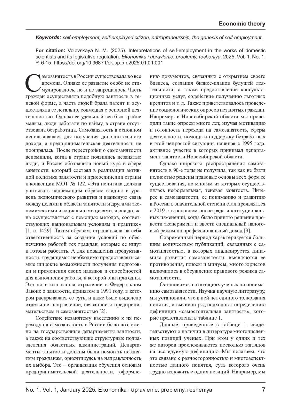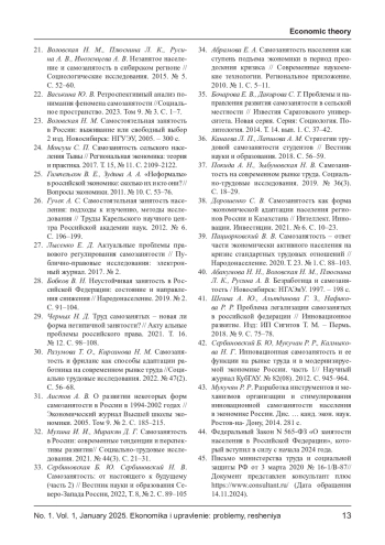 9. Вишневская Н. Т. Самозанятость в переходных экономиках // Мировая экономика и международные отношения. 2013. № 10. С. 58. EDN: RDRAST