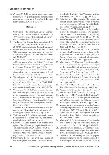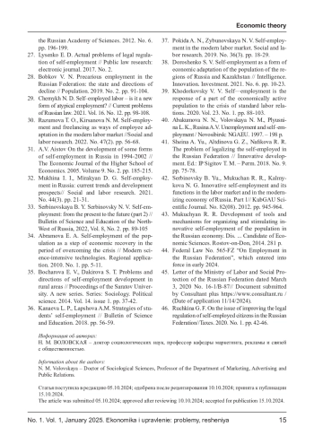 15. Пациорковский В. В. Самозанятость - ответ части экономически активного населения на кризис стандартных трудовых отношений // Народонаселение. 2020. Т. 23. № 1. С. 88-103. EDN: KSWASO