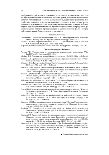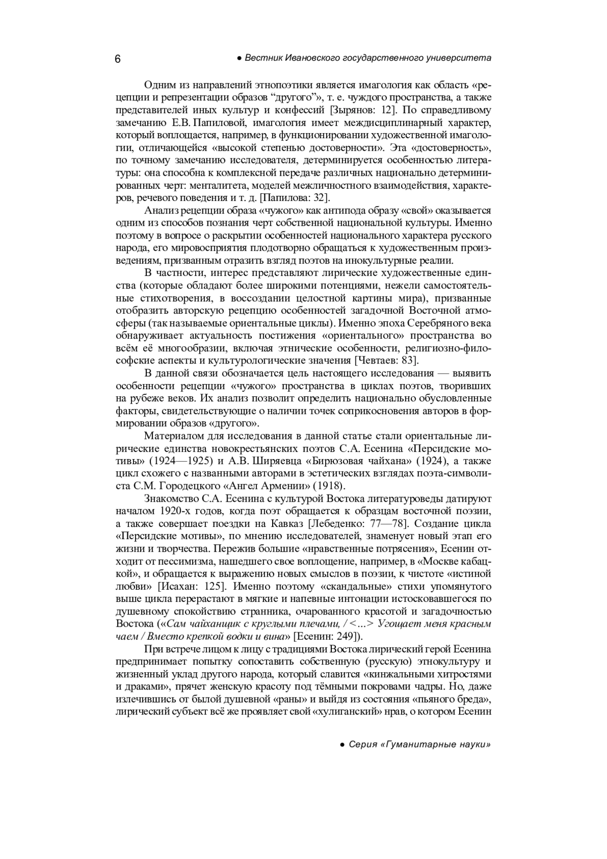 Isakhan I. The theme of the East in the work of Sergei Yesenin: on the material of the cycle “Persian motifs”, Modern science: topical problems of theory and practice. Series: Humanities, 2018, no. 4, pp. 124-127. - In Russ.