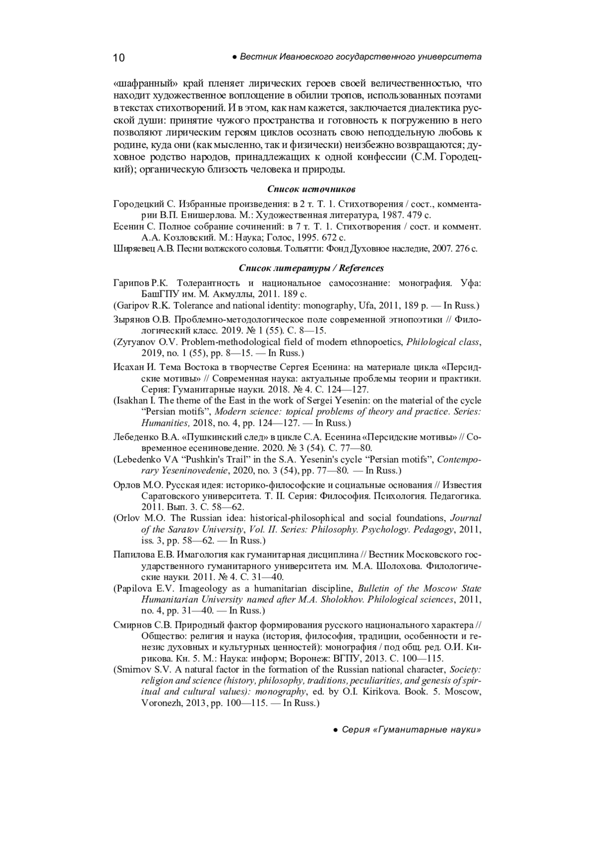 5. Зырянов О.В. Проблемно-методологическое поле современной этнопоэтики // Филологический класс. 2019. № 1 (55). С. 8-15. EDN: IBHTPN