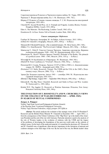 16. Kimbal W.F. The Juggler: Fr. Roosevelt as Wartime Statesman. Princeton, New Jersey: Princeton University Press, 1991, 304 p.