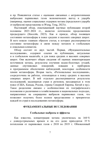 Представлен обзор публикаций, посвященных исследованиям метаносферы средних и высоких широт северного полушария во второй половине 2023-2024 гг., в частности, уточнениям размеров глобальных и региональных естественных и антропогенных источников, полученным как с помощью спутникового и наземного мониторинга, так и посредством моделирования. Также рассмотрены работы, в которых изучаются различные аспекты формирования метаносферы, оценки отклика климатической системы на рост содержания метана в атмосфере и др. Особое внимание уделено процессам, происходящим в поясе 60-90° с. ш., в т. ч. бюджету метана водно-болотных угодий. Отдельно рассматриваются работы, характеризующие направления исследований, проводимых на территориях стран региона (России, стран Северной Европы, Китая, США, Канады).