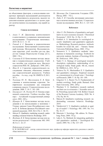 7. Шушаро В. Г. Качественные методы исследования и их использование в экономике // Ученые записки Санкт-Петербургского имени В. Б. Бобкова филиала Российской таможенной академии. 2020. № 4 (76). С. 86-91. EDN: OWRKXY