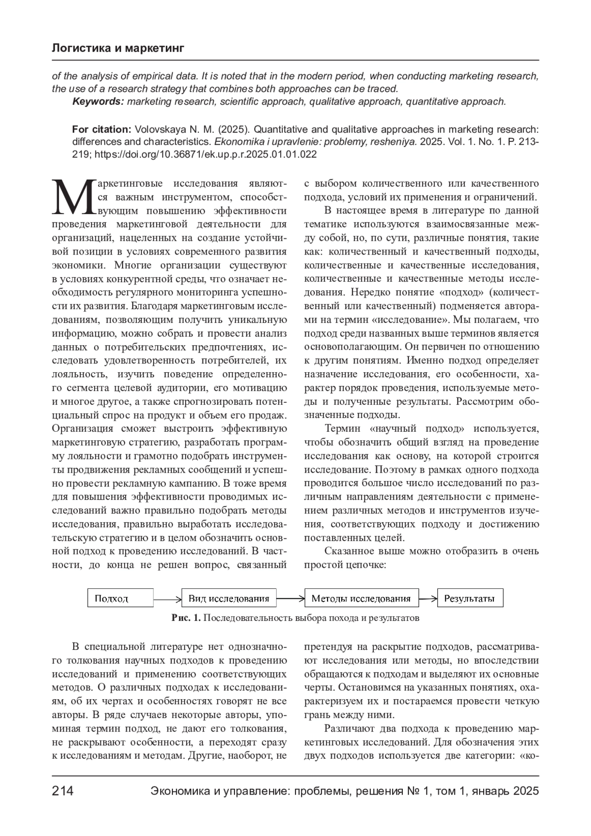 Много лет в мире ведутся споры приверженцев количественного и качественного подходов. Однако в литературе до сих пор отсутствует однозначное понимание данных подходов. В статье анализируется соотношение понятий «количественный» и «качественный» подходы к проведению маркетинговых исследований. Рассмотрены мнения отечественных и зарубежных ученых по данному поводу, обобщены высказывания и на этой основе изложены основные характерные черты указанных подходов, обозначены их особенности. Выделены основные признаки, лежащие в основе разделения подходов, такие как: идеология и направления исследования, способы познания, границы использования, основные методы и особенности анализа эмпирических данных. Отмечается, что в современный период при проведении маркетинговых исследований прослеживается применение исследовательской стратегии, в которой сочетаются оба подхода.