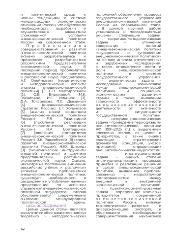 26. Voiteshonok, Ya.A. Evolution of priorities of Russia’s foreign economic policy (2000-2010) // Bulletin of the Peoples’ Friendship University of Russia. Series: Economics. 2011. No. 2. Pp. 14-22. (In Russ.).