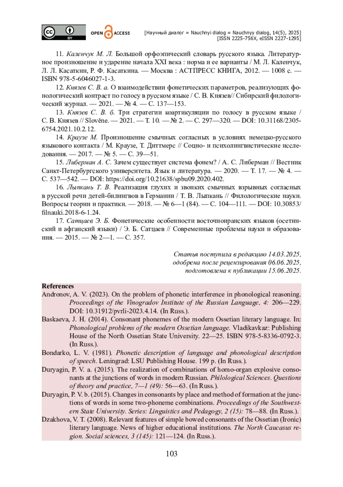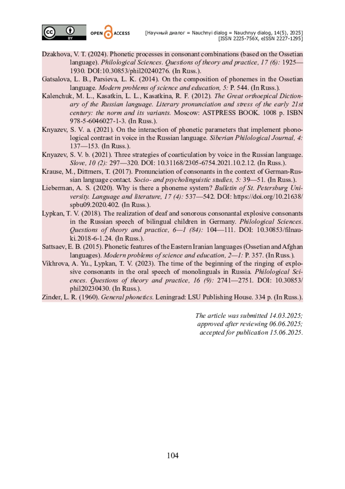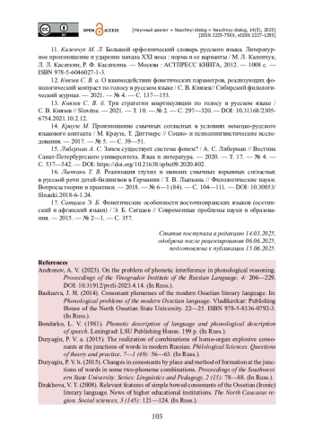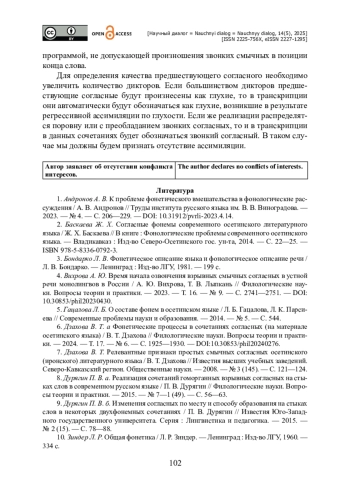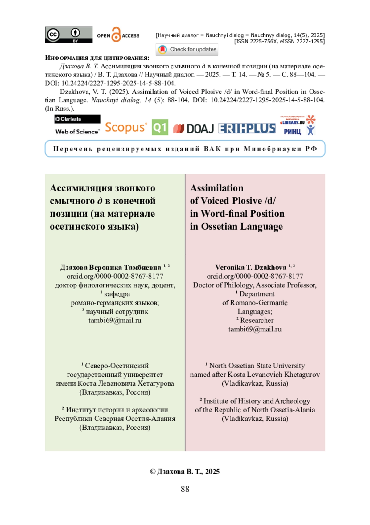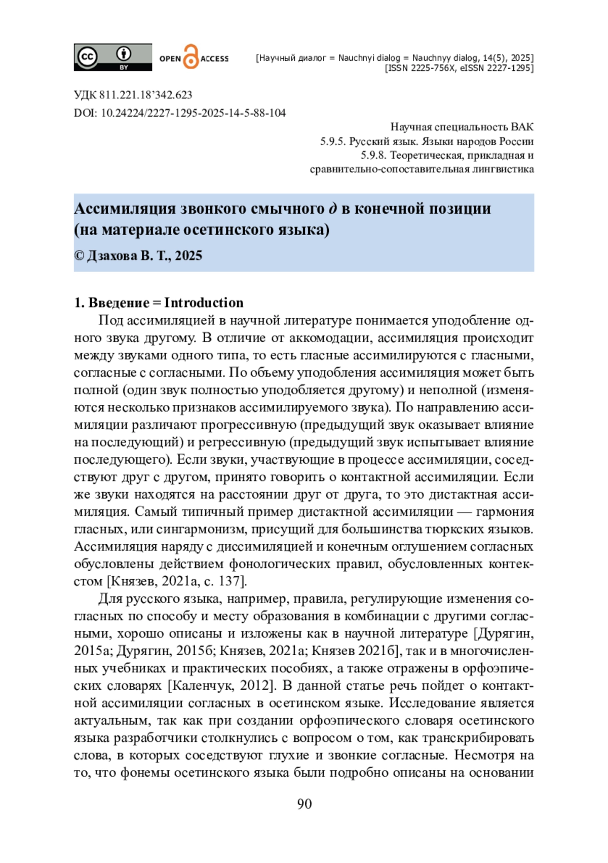 ДЗАХОВА В. Т. АССИМИЛЯЦИЯ ЗВОНКОГО СМЫЧНОГО Д В КОНЕЧНОЙ ПОЗИЦИИ (НА МАТЕРИАЛЕ ОСЕТИНСКОГО ЯЗЫКА) // НАУЧНЫЙ ДИАЛОГ. 2025. ТОМ 14, № 5