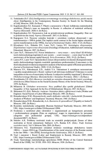 27. Тихонова Н.Е. Трансформации социальной структуры российского общества: конец 1980-х - конец 2010-х гг. // Социологические исследования. 2021. № 8. EDN: RVGNAQ