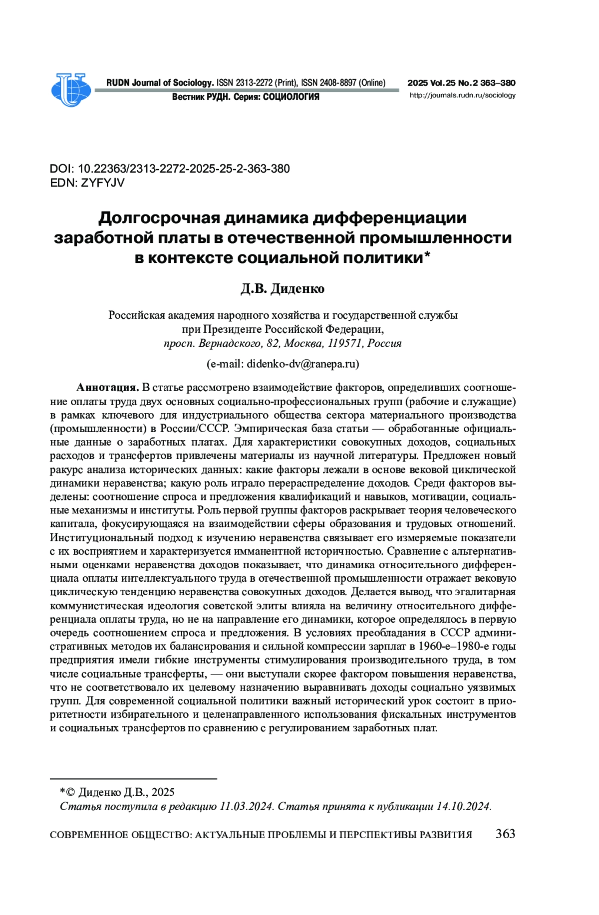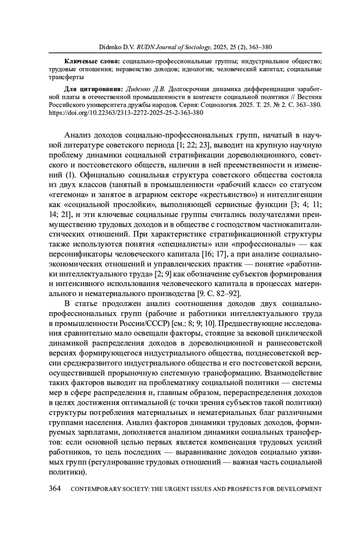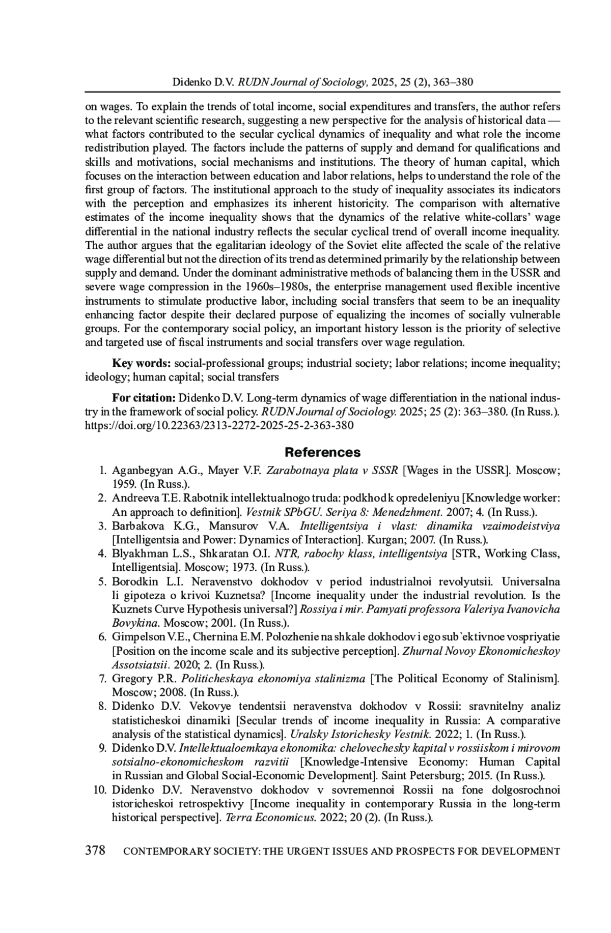 8. Диденко Д.В. Вековые тенденции неравенства доходов в России: сравнительный анализ статистической динамики // Уральский исторический вестник. 2022. № 1. EDN: NLZKEC