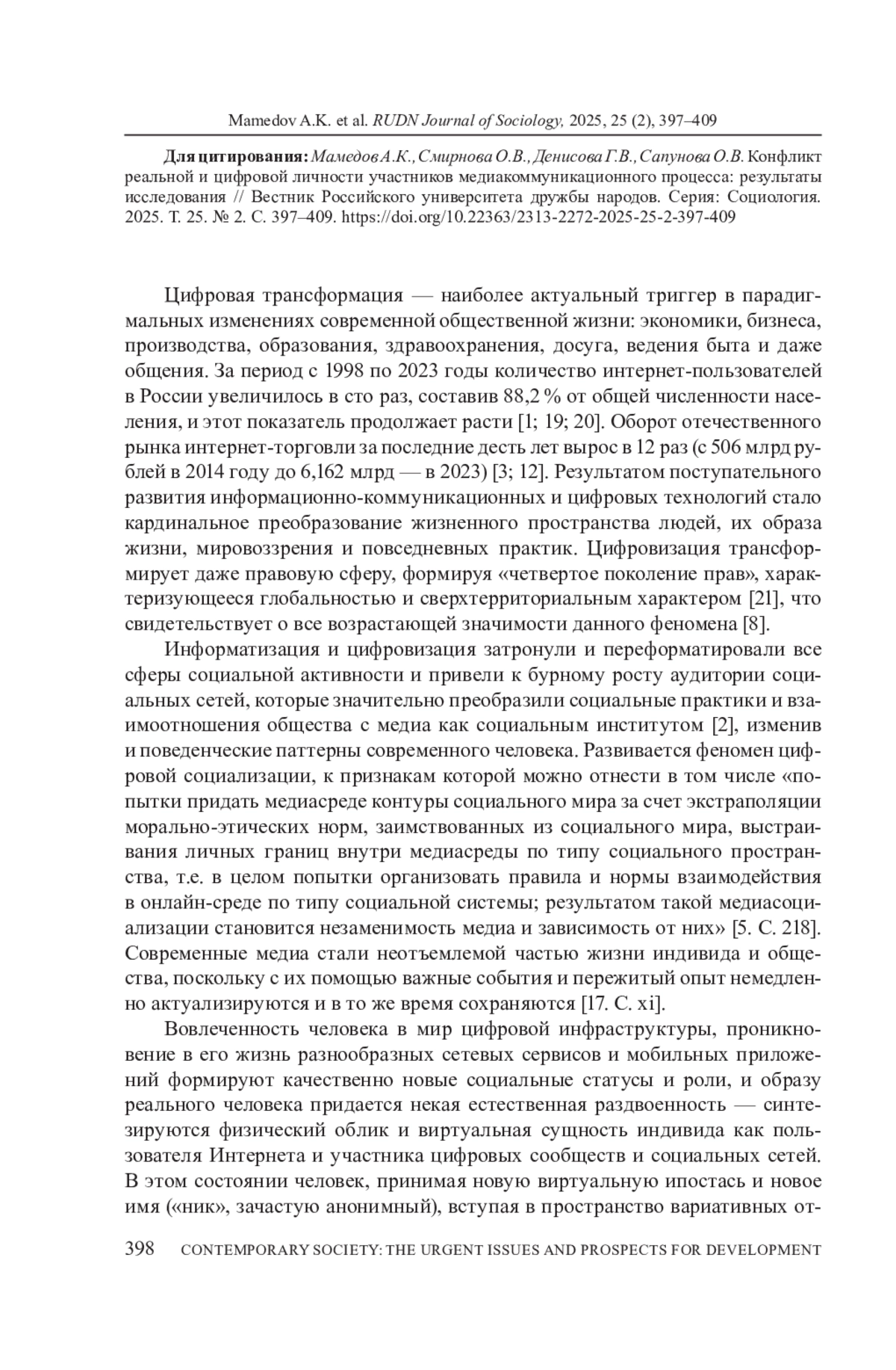 9. Костоломова М.В. Цифровая девиация как феномен новой социальной реальности: методологические основания и концептуализация понятия // Социологическая наука и социальная практика. 2020. Т. 8. № 2. EDN: UIEQQC