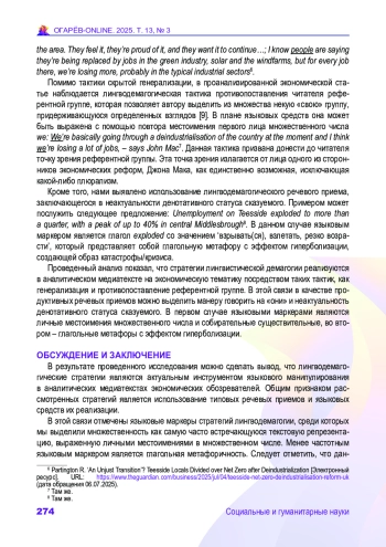 Обсуждение и заключение. Данное исследование расширяет научное понимание применения стратегий лингвистической демагогии в медиатекстах экономической направленности. Материалы исследования могут быть полезны для проведения комплексных исследований, посвященных феномену языкового манипулирования в текстах различных видов дискурса.