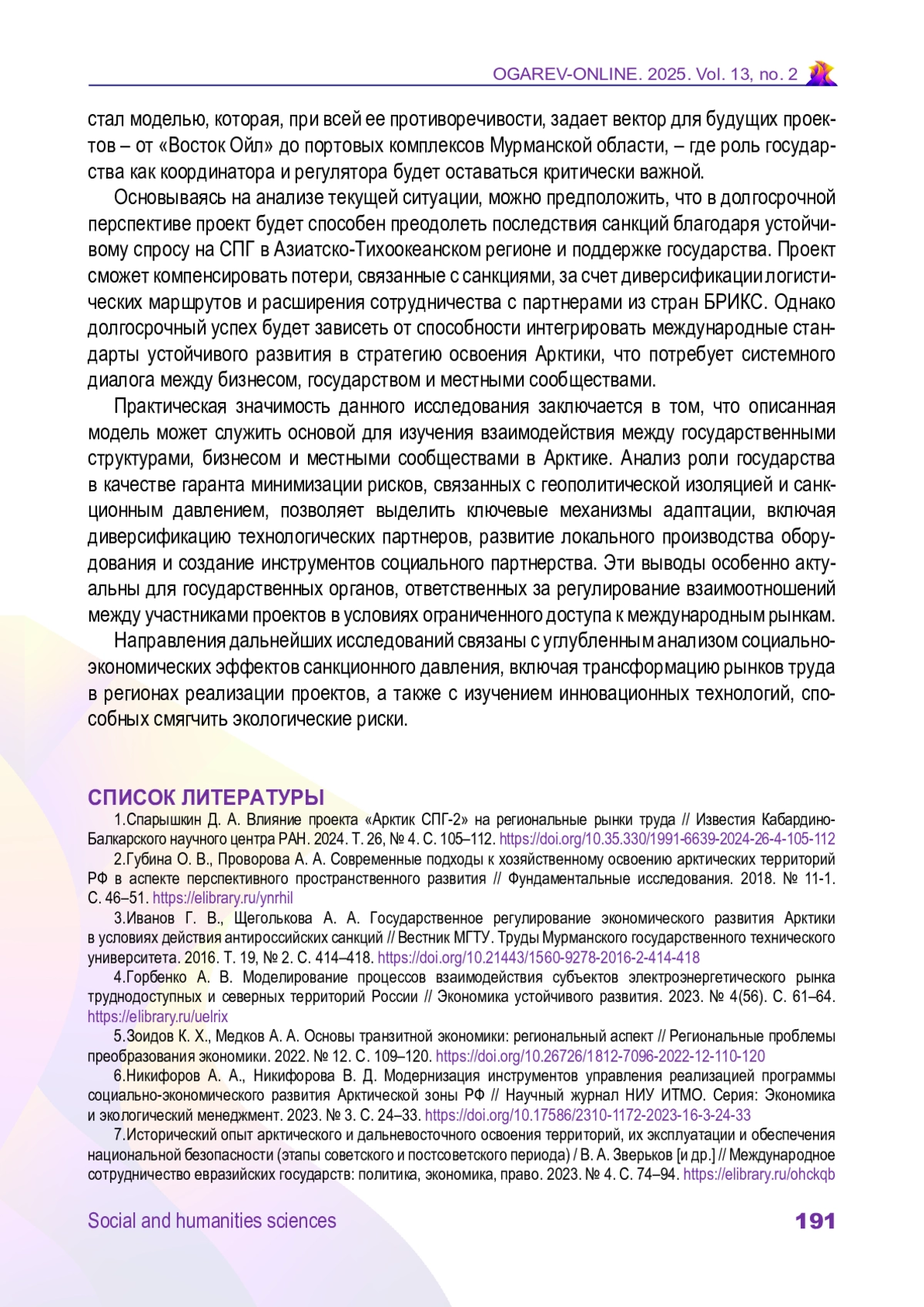 Статья: ГОСУДАРСТВЕННАЯ ПОЛИТИКА РФ В АРКТИЧЕСКОЙ ЗОНЕ: РАЗВИТИЕ ЭНЕРГЕТИЧЕСКИХ ОБЪЕКТОВ (НА ПРИМЕРЕ ПРОЕКТА «АРКТИК СПГ 2») (2025)
