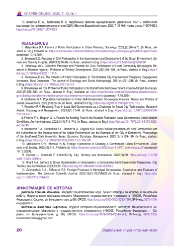 Материалы и методы. В рамках исследования проанализированы 28 источников, опубликованных в период с 2020 по 2024 г. и посвященных вопросам вовлеченности жителей в процесс благоустройства городов в России и зарубежных странах. В качестве источников использованы статьи, взятые из российских электронных библиотек, а также нормативно-правовые акты.