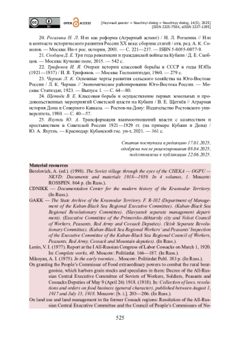 24. Щетнёв В. Е. Классовая борьба и осуществление первых земельных и продовольственных мероприятий Советской власти на Кубани / В. Е. Щетнёв // Аграрная история Дона и Северного Кавказа. - Ростов-на-Дону: Издательство Ростовского университета, 1980. - С. 40-57.