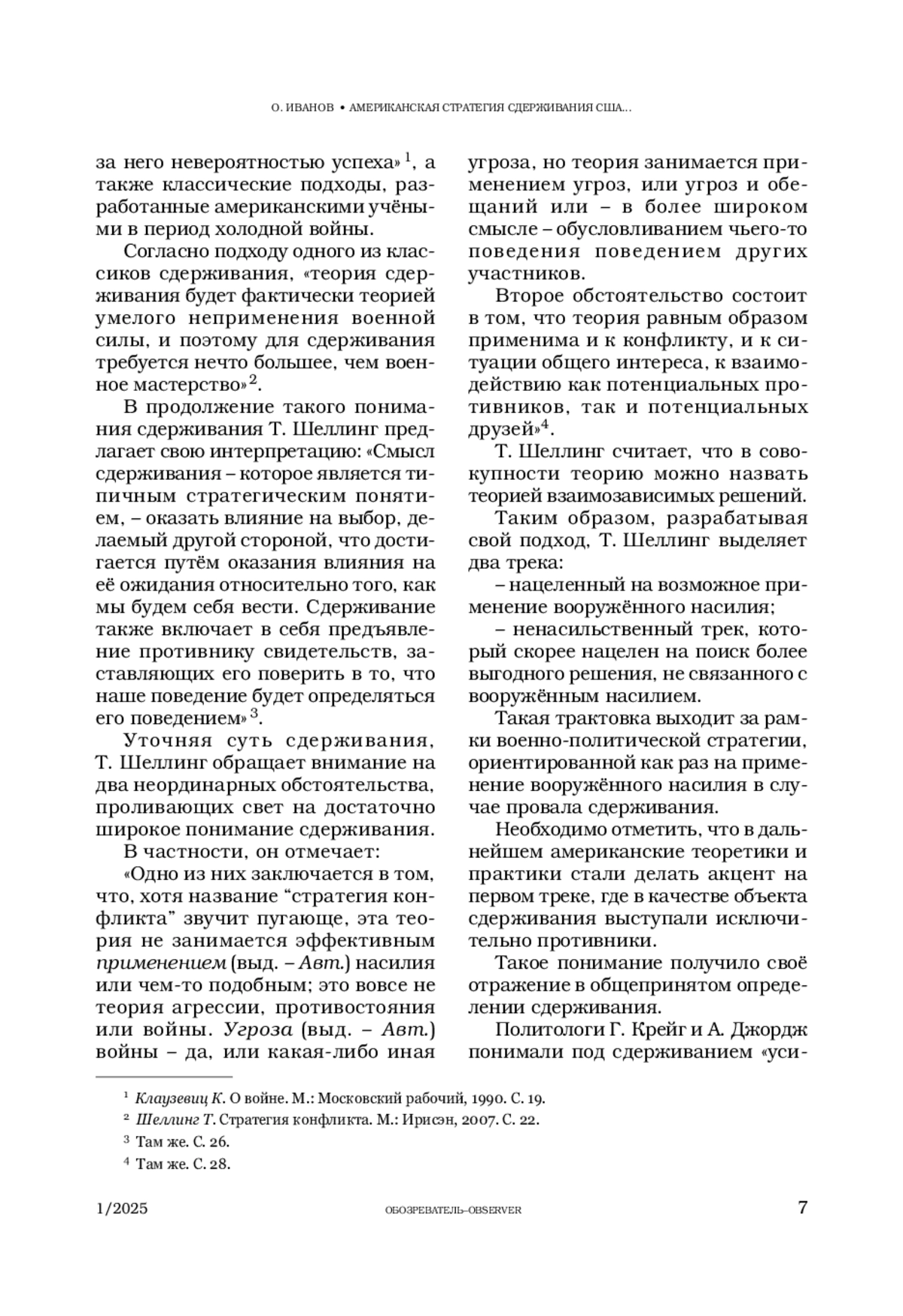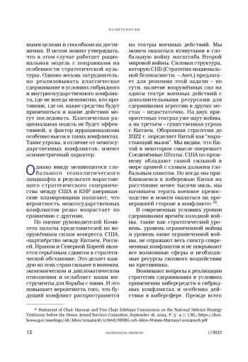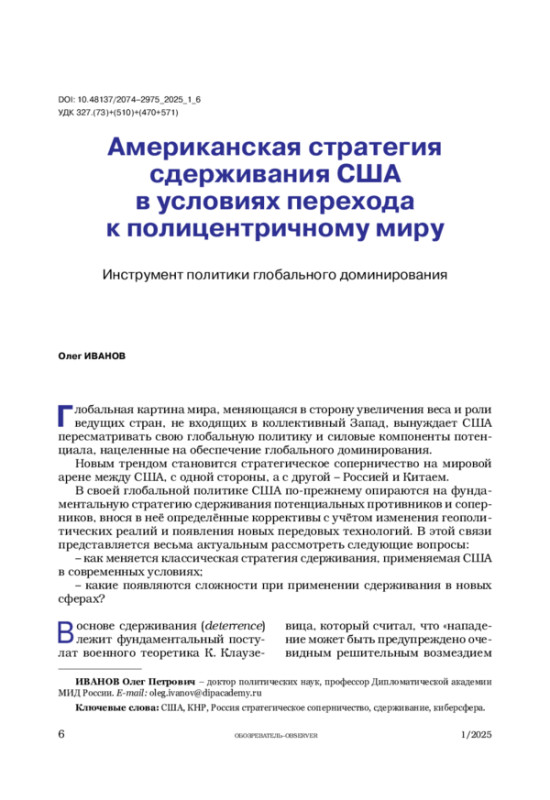 1. Иванов О. Американский взгляд на стратегическое соперничество и роль военной силы // Обозреватель-Observer. 2024. № 2. С. 27-36.