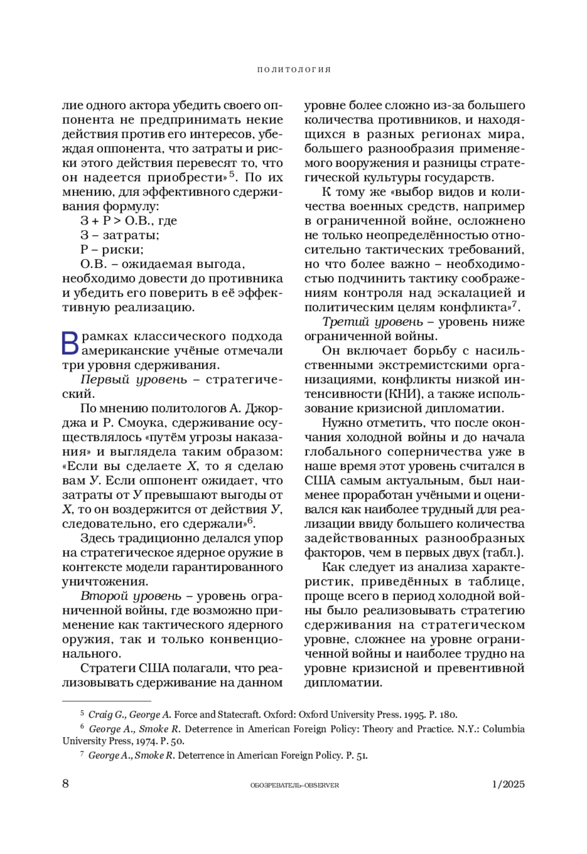 7. George A., Smoke R. Deterrence in American Foreign Policy: Theory and Practice. N.Y.: Columbia University Press, 1974. - 666 р.